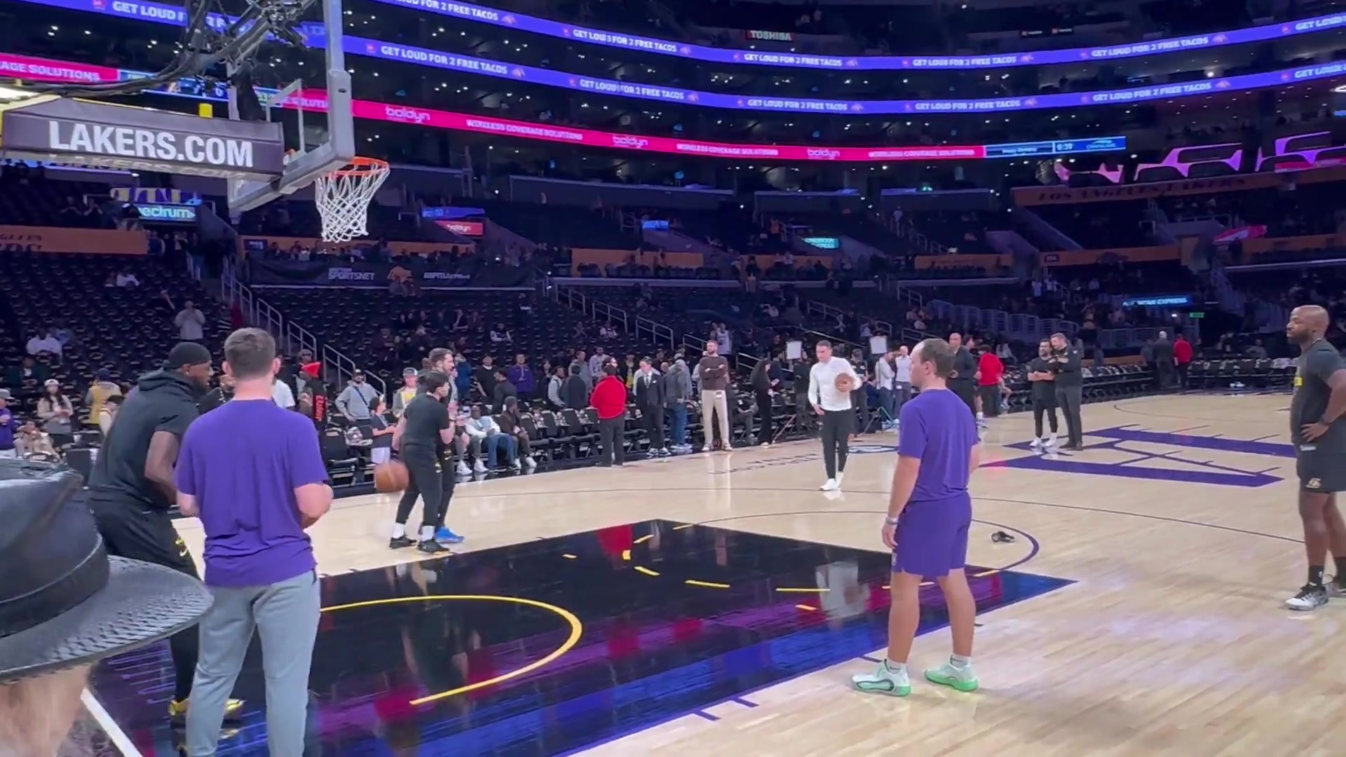 詹姆斯與薩瓦娜觀看道奇隊比賽 面對鏡頭戴王冠給妻子也戴個??